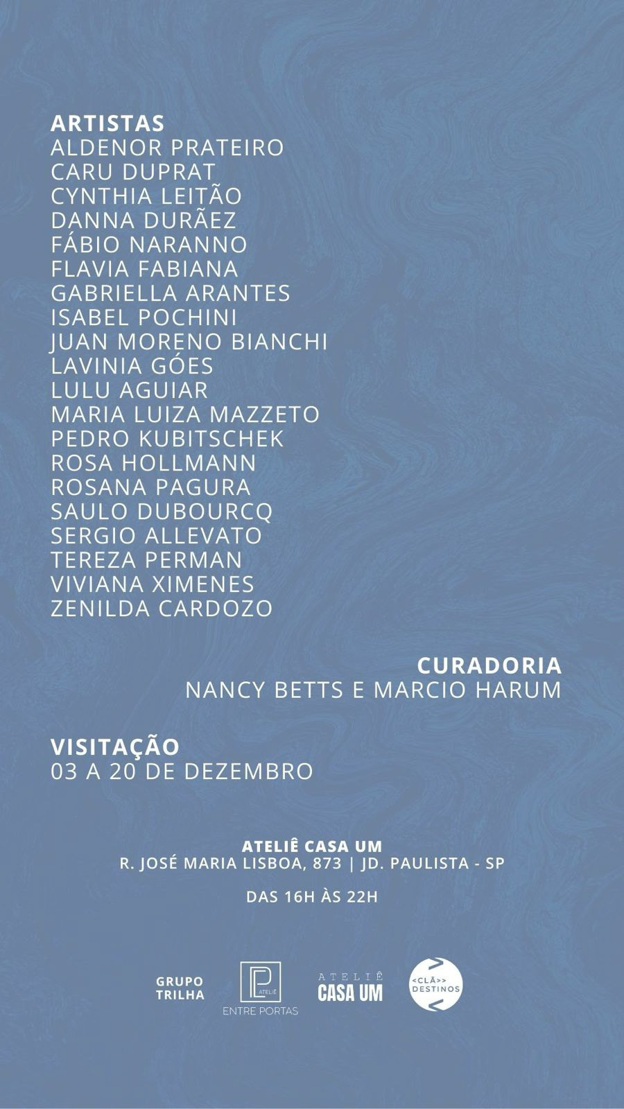 Nossa exposição é a enunciação de que o mundo, em 2025, é o caos e ordens impostas à natureza e (s) gente(s). Mais do que isso, esta exposição é a somatória de imagens (literalmente o significado de imaginário) trazido a luz, apontando uma solução para os impasses nos quais nos encontramos atualmente [o impasse climático, ético, político e humanitário]. Quase que dizendo aos olhos de quem vê: é apenas pela imaginação que vamos escapar do controle dos corpos e mentes que nos é imposto. Para imaginando criarmos, juntos, um futuro livre da repetição que esvazia discursos e sujeitos: a velha merda de sempre (na forma mais literal da tag de Jean-Michel Basquiat).