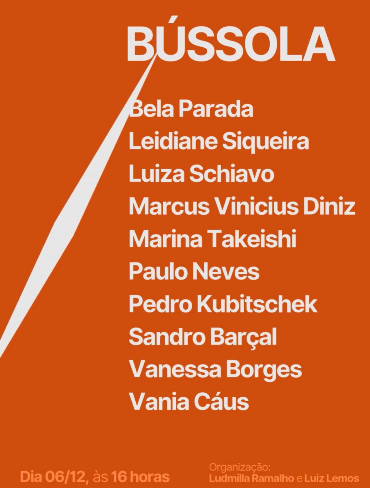CAMPO DE ORIENTAÇÃO E DESVIO, O PROGRAMA BÚSSOLA RESULTA DE TRÊS MESES DE IMERSÃO COLETIVA EM UM PROCESSO FORMATIVO EM ARTE CONTEMPORÂNEA QUE, AQUI, SE DESDOBRA EM EXPOSIÇÃO, REUNINDO DEZ ARTISTAS CUJAS PESQUISAS CONVERGEM EM UM EIXO COMUM: A REORGANIZAÇÃO DO OLHAR COMO OPERAÇÃO QUE INQUIETA O GESTO E CONVOCA NOVAS ROTAS POSSÍVEIS. NESSE